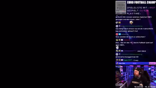 04:50:34Nachdem der Streamer vier Level von Prince of Persia durchgespielt hat, startet er eine Umfrage im Chat, um das Spiel zu bewerten. Der Durchschnitt der Bewertungen liegt bei 5,6. Das Spiel wird als mittelmäßig eingestuft, wobei die Grafik gelobt und die Kämpfe kritisiert werden. Anschließend wird ein neues Spiel für den SNES gezogen: Euro Football Champ.