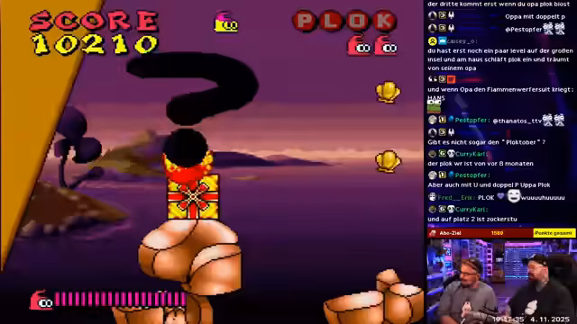 03:18:37Nach Vortex wechselt man zum Spiel Plock, einem beliebten Jump 'n' Run. Der Streamer erinnert sich daran, dass das Spiel auf niedrigeren Schwierigkeitsgraden kürzere Level und Shortcuts bietet. Das Gameplay zeichnet sich durch kurze, knifflige Levels und einfache, aber zeitlose Grafik aus. Ein geheimes Bonussystem mit Verwandlungen und Bonuswelten wird vorgestellt, wobei der Gast durch clevere Sprünge beeindruckt.