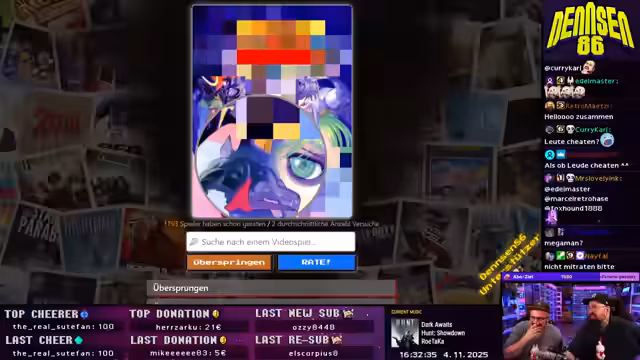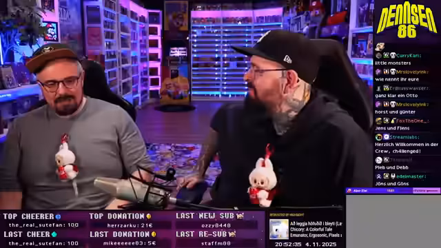 00:29:10Ein kurzer Streit entbrennt über den Kaufpreis von Labubu-Figuren auf einer Messe. Während der Streamer mit dem Preis von 45 Euro zufrieden ist und die Figur als gelungene Investition sieht, meint der Chat, sie seien überteuert worden. Als Fazit wird betont, dass die persönliche Zufriedenheit wichtiger ist als der Preis. Anschließend wird eine Gamedill-Runde gestartet, in der Solaris und der Streamer versuchen, Spiele anhand von Covern, Charakteren und Stichworten zu erraten, wobei die Schwierigkeit der Rätsel im Fokus steht.