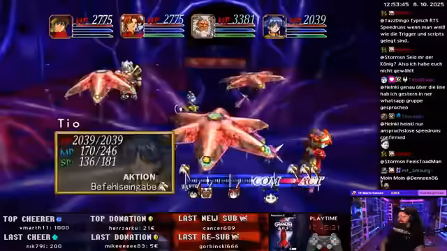 02:56:38Die Gruppe erreicht den Körper von Valmar und beginnt den finalen Kampf. Die Atmosphäre ist gespannt und dramatisch. Der Streamer wechselt die Ausrüstung seiner Charaktere, um optimal auf den Kampf vorbereitet zu sein. Die Zusammenstellung der Ausrüstung ist entscheidend, da Valmar stark ist. Der Kampf selbst beginnt, und die Angriffe der Helden wirken mächtig, insbesondere der 'Sky Dragon Slash' von Ryudo. Die Struktur des finalen Bereichs wird als irrenhaft und verwirrend beschrieben, was den Kampf zusätzlich erschwert.