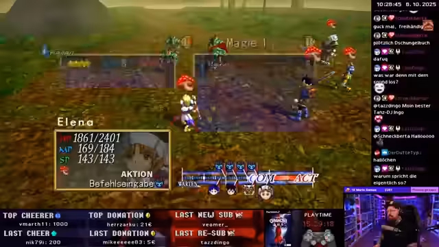 01:29:08Im Dungeon stößt der Streamer auf Herausforderungen, darunter eine mysteriöse Waschmaschine, die sich seltsam bewegt. Bei der Kämpfen gegen verschiedene Gegner, darunter ein Fresschenbesen, sammelt er wertvolle Items wie 'Yomis Elixier' und 'Zaubersamen'. Er testet neue Zauber wie 'Höllenbrand', die mächtig, aber teuer sind. Die Erkundung des Dungeons gestaltet sich als fesselnd, da er sowohl neue Gegner als auch wertvolle Ausrüstung findet, die er sorgfältig für seine Gruppe zu verteilen versucht.