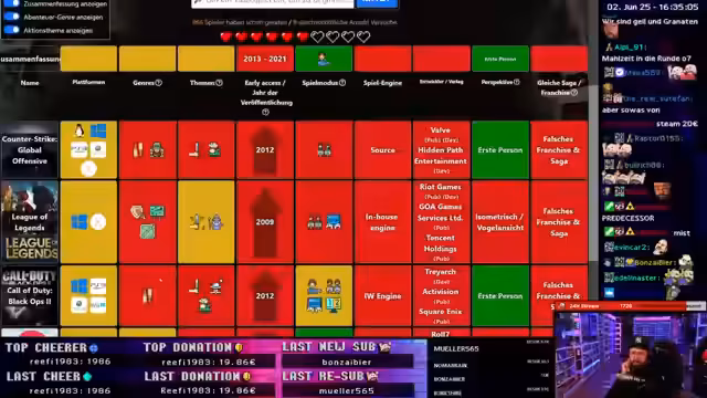 00:38:00Eine längere Sequ widmet sich dem Spiel 'Gamedle', bei dem aus Bildern und Hinweisen das gespielte erraten werden muss. Streamer kämpft mit schwierigen Hinweisen wie dem Entwickler 'Fireproof Games' und fragt den Chat um Hilfe. Es werden verschiedene Lösungsansätze diskutiert und genre-spezifische Tipps ausgetauscht, um das Spiel zu identifizieren, was zu einer anregenden Interaktion führt.
