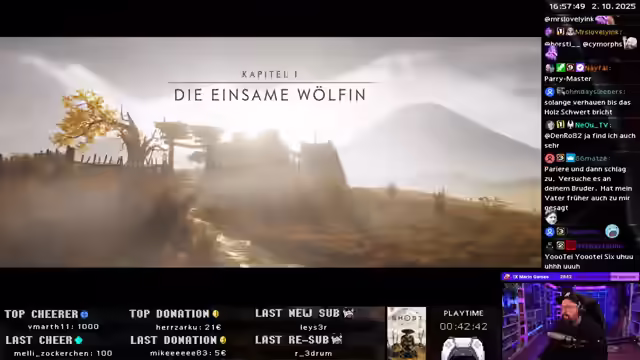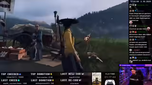 00:13:15Es wird ein Bonus-Stream am morgigen Feiertag um 10 Uhr angekündigt, wobei Ghost of Yotei und eventuell Megabonk gespielt werden sollen. Es besteht jedoch Unsicherheit, ob Ghost of Yotei, ein Sony-exklusives Spiel, die Zuschauer abschrecken könnte, da viele es selbst spielen und sich nicht spoilern lassen wollen. Alternativ könnten die Mario-Spiele Galaxy 1 und 2 gespielt werden. Der erste Eindruck von Ghost of Yotei ist überwältigend positiv, insbesondere in Bezug auf Inszenierung, Sound und Grafik. Das Gameplay wird als fesselnd beschrieben, und das Kampfsystem, obwohl noch in den Grundlagen, macht bereits jetzt viel Spaß. Die Geschichte ist kurz und prägnant, aber dennoch sofort verständlich. Die Nutzung des Windes zur Navigation wird als genial gelöst hervorgehoben, ähnlich wie im ersten Teil. Das Spiel wird als exklusiver Titel gefordert. Es werden verschiedene Spielelemente wie das Musizieren mit einem Shamisen und das Erleben von Erinnerungen aus der Vergangenheit vorgestellt, die durch das Wechseln zwischen Vergangenheit und Gegenwart erkundet werden können. Das Kampfsystem wird als intensiv und herausfordernd beschrieben, mit einem Fokus auf präzises Blocken und Parieren. Die Grafik wird als atemberaubend empfunden, und die Integration des Touchpads wird als gelungen hervorgehoben.