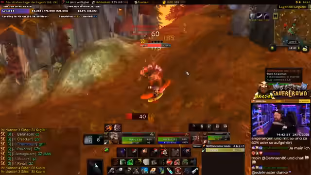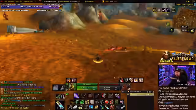 Ein Gnom schürfte in World of Warcraft auf Level 53. Der Fokus lag auf einem frustrierenden Item-Grind, der den Groß des Streams bestimmte. Gleichzeitig wurde mit der Vorbereitung für einen Gilde-Raid verbracht, um die gemeinsame Aktion zu koordinieren. Der Stream endete abrupt, da der Akteur einer privaten Feier beiwohnte.