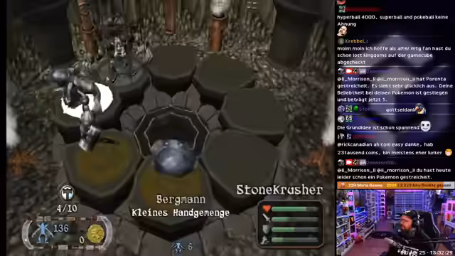 03:31:18Es wird 'Goblin Commander' ausprobiert, ein RTS-Spiel für den Gamecube. Nach anfänglichen Schwierigkeiten mit der Steuerung wird das Tutorial absolviert. Es wird festgestellt, dass das Spielprinzip simpel gehalten ist. Die Möglichkeit, Goblins direkt zu steuern, wird als cooles Feature hervorgehoben. Titanen, die ebenfalls direkt gesteuert werden können, werden als kampfstarke Einheiten beschrieben. Die Kombination aus direkter Steuerung und RTS-Elementen wird als interessant empfunden. Es wird die Vermutung geäußert, dass das Spiel in Nintendo Switch Online erscheinen könnte. Nach einer kurzen Erkundung des Spiels wird entschieden, zu anderen Spielen überzugehen, obwohl 'Goblin Commander' als cooles Game eingeschätzt wird.
