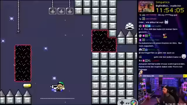 03:53:41Der Streamer beschäftigt sich mit einem schwierigen SMW-Hack, speziell mit einem Double Jump und einem komplexen Jump-Setup, das mehrere Versuche erfordert. Er diskutiert die Boss-Rush-Regeln und Items in Dungeons, wobei er betont, dass Items normalerweise in Dungeons gefunden werden können. Die Mechanik des Shell Jumps wird als sehr zufällig und unkonstant beschrieben, was den Streamer frustriert. Trotzdem empfindet er SMW als geil, solange die Level nicht zu nervig sind.
