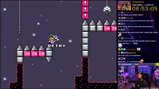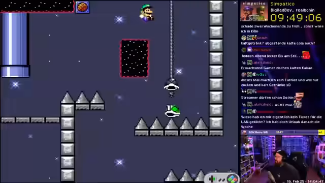 05:10:21Der Streamer kämpft mit einem Speedrun-Level in einem SMW-Hack, wobei er auf Schwierigkeiten bei bestimmten Sprüngen und Timings hinweist. Er experimentiert mit verschiedenen Techniken, wie dem Delfin-Sprung, um Hindernisse zu überwinden und seine persönliche Bestzeit (PB) zu verbessern. Trotz einiger Rückschläge und dem Hängenbleiben an Kanten, analysiert er seine Fehler und passt seine Strategie an. Er betont die Notwendigkeit, die Zeit im Auge zu behalten, um die richtigen Karten für bestimmte Aktionen zu erhalten. Der Streamer äußert sich frustriert über zufällige Elemente, die seine Versuche erschweren, gibt aber nicht auf und übt weiter, um die schwierigen Passagen zu meistern. Er spricht auch kurz über die Möglichkeit, Kanalpunkte für bestimmte Aktionen oder Gegenstände im Spiel zu verwenden, merkt aber an, dass dies aufgrund von Twitch-Richtlinien und der Komplexität des Kanalpunktesystems schwierig umzusetzen ist.