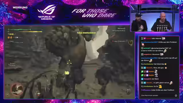 00:11:45Die Präsentation auf der ASUS Stage der CaGGtus beinhaltet eine Monster Hunter Challenge, bei der die Teilnehmer gegeneinander antreten, um ein Shutter Cabra zu besiegen. Der Gewinner erhält eine Rock Harp Ace Aim Lab Edition Maus. Jeder Teilnehmer erhält das gleiche Loadout, um faire Bedingungen zu gewährleisten. Es wird ein Zeitlimit von 10 Minuten festgelegt, um den Ablauf zu gewährleisten. Der erste Teilnehmer, Max, spielt mit der Gewehrlanze und benötigt 4 Minuten und 47 Sekunden. Der zweite Teilnehmer, ebenfalls Max, unterbietet diese Zeit mit 4 Minuten und 18 Sekunden mit der Morphax. Der dritte Teilnehmer ist Sockerberg mit dem Großschwert, der 4 Minuten und 50 Sekunden benötigt. Die Zuschauer werden ermutigt, sich aktiv zu beteiligen und ihr Können unter Beweis zu stellen, wobei die besten Jäger mit Preisen belohnt werden. Die Monster Hunter Wilds Neuerungen, wie das Saikri und der Fokus-Modus, werden hervorgehoben, um das Gameplay zu verbessern und den Spielern mehr Kontrolle über ihre Angriffe zu geben. Es wird betont, dass es keine Meta gibt und jeder Spieler seinen eigenen Stil finden kann.