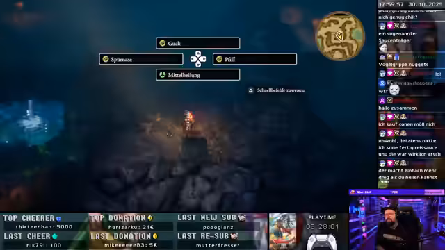 05:59:35Nachdem der Streamer den Zauberschlüssel erhalten hat, begibt er sich zurück, um verpasste Items in blauen Truhen zu holen. Er stellt jedoch fest, dass das Essen, das er sich zubereitet hat, "todestraurig" und geschmacklos ist. Nach dieser Enttäuschung kündigt er einen Wechsel zum Spiel Street Fighter 6 an. Er will seinen neuen "Leverless Controller" vorstellen und erklären, wie mühsam es ist, sich an die neuen Eingaben zu gewöhnen, da sie sich sehr von einem gewöhnlichen Controller unterscheiden.