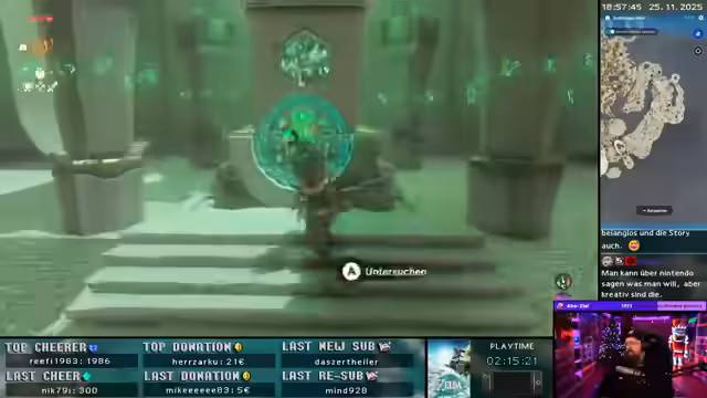02:37:40Der Streamer nähert sich dem Ende der Tutorial-Insel und bereitet sich auf den Übergang zur Hauptgeschichte vor. Nach einer kurzen Pause wird der letzte Schrein abgeschlossen, der die Fähigkeit des Deckensprungs verleiht. Diese Fähigkeit, die das Durchdringen von Decken ermöglicht, wird als extrem nützlich für die vertikale Erkundung gelobt. Die verbesserte Performance der Switch 2 Version wird erneut betont, da sie das Spielerlebnis im Vergleich zur Vorgängerversion erheblich steigert. Nach dem Abschluss der Tutorial-Insel und dem Erhalt des reinigenden Lichts ist der Weg zum Tempel der Zeit frei.