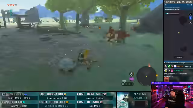 02:12:14Ein Krog bittet um Hilfe, da er von seinem Freund getrennt wurde und ein Rauchsignal sendet. Der Streamer nutzt einen Wagen, um den Krog zu transportieren und seine Freunde wieder zusammenzuführen, was mit einer Belohnung in Form von Pfeilen honoriert wird. Die Effizienz und der Spaß am Einsatz von Fahrzeugen werden dabei betont. Der Streamer äußert sich positiv über die Menge an Pfeilen im Spiel und die verbesserte Performance der Switch 2 Version, die das Spielerlebnis deutlich aufwertet, im Gegensatz zur Switch 1 Version, die als nahezu unspielbar empfunden wurde.