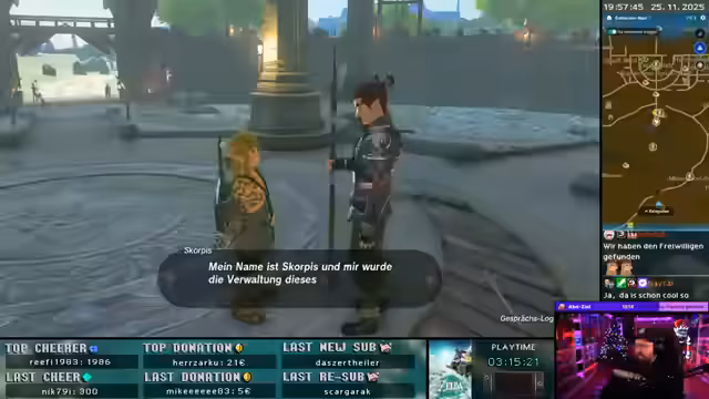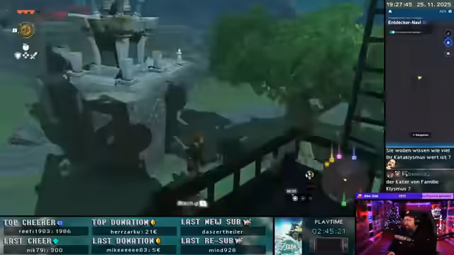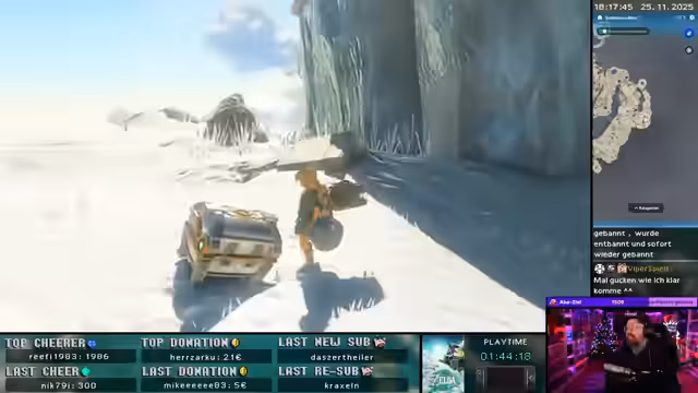 00:17:09Der Streamer kündigt an, das Streaming-Zimmer weihnachtlich zu dekorieren, inklusive Schnee und einem Adventskalender, der ab dem 1. Dezember täglich geöffnet wird und kleine Überraschungen für den Stream bereithält. Es wird über die hohen Decken des Wohnzimmers und die Herausforderungen beim Anbringen von Dekorationen gesprochen. Zudem wird die Möglichkeit erwähnt, dass Zuschauer selbstgebastelte Baumdekorationen oder Wichtelgeschenke an ein Postfach senden können, dessen Details auf dem Kanal zu finden sind. Der Streamer zeigt einen bequemen Hoodie, der trotz Markenlogos gerne getragen wird, und plant, ab dem ersten Advent sonntags einen Weihnachtspulli anzuziehen. Die Vorfreude auf 'Tears of the Kingdom' ist groß, insbesondere auf die 60 FPS-Version, und es wird ein Zelda-Race um 21 Uhr angekündigt.