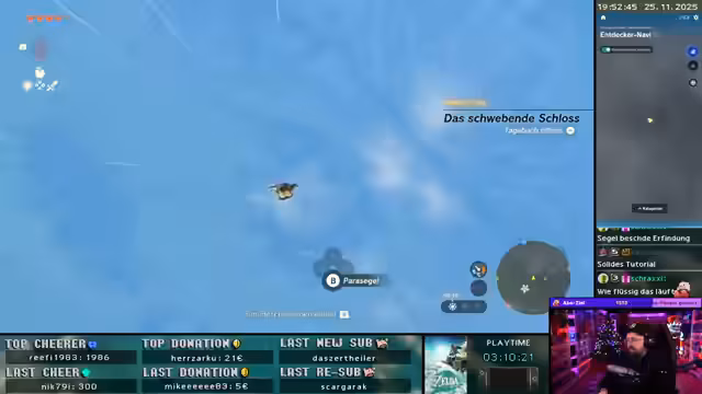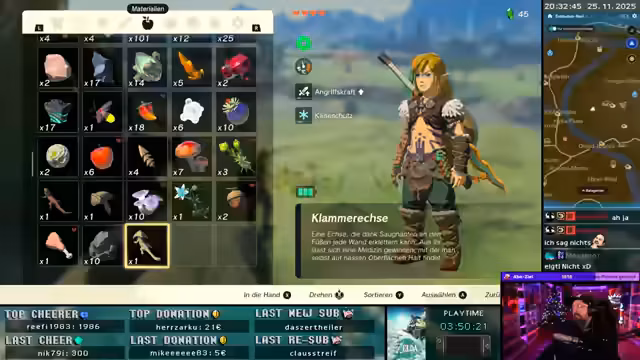 03:15:30Nach über zwei Stunden Tutorial beginnt das eigentliche Spiel. Der Streamer äußert den Wunsch, das unzerstörbare Master-Schwert und das klassische Link-Outfit zu besitzen. Die Wichtigkeit des Farmens und Craftens von Ausrüstung wird betont, insbesondere die Vorteile permanenter Buffs durch gesammelte Gegenstände. Die Hauptquest, die Suche nach Prinzessin Zelda, wird als nächstes Ziel festgelegt, wobei der Streamer hofft, bald ein Segel zu erhalten, um die Welt effizienter erkunden zu können. Die App-Funktionen und Amiibos sollen dabei helfen, den Spielfortschritt zu beschleunigen.