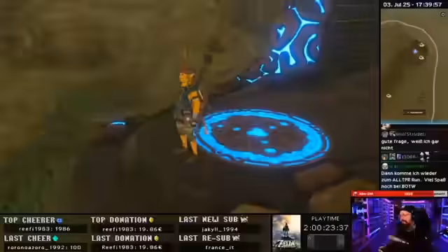 00:00:01Der Stream beginnt mit dem Spielen von Breath of the Wild. Der Streamer beschwert sich über die Schwierigkeit der Bienen im Spiel und vergleicht sie mit Ridley. Es wird über alte Spiele wie The Goonies gesprochen, und der Streamer plant, einen Schrein zu betreten. Er erwähnt, dass das Spiel losgeht und eine bestimmte Farbkombination als Glückssymbol gilt.
