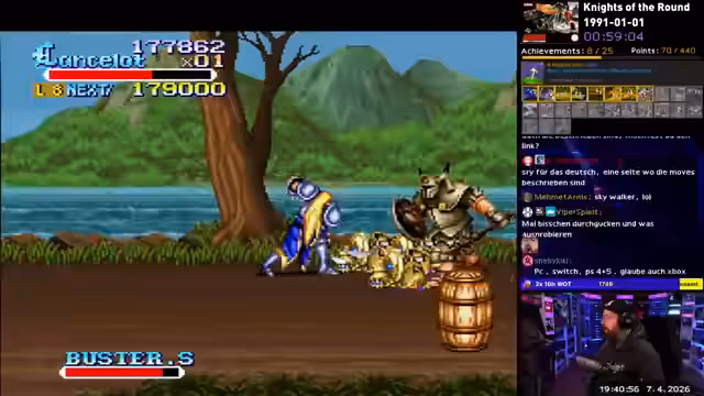 04:22:10Der Streamer startet mit 'Knights of the Round' und versucht, den schwierigen Bosskämpfen zu begegnen. Er probiert verschiedene Charaktere wie Parzival und Lancelot, wobei Lancelot als besser empfunden wird, wegen seines schlagstarken Angriffs. Dennoch ist die verletzliche Spielfigur ohne 'I-Frames' (Sicherheitsfenster nach Treffern) ein Problem. Die Bosse werden als 'bescheuert', 'unfair' und der größte 'Schmutz' des Spiels bezeichnet.