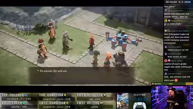 03:16:41Der Stream beginnt mit der Vorstellung des Spiels Dragon Quest 7 Reimagined, das seit dem Vortage als Pre-Order spielbar ist und offiziell am Donnerstag erscheint. Der Streamer bewertet das Remask sehr positiv, insbesondere die grafische Aufbereitung, die modellierten Puppen und die zugehörigen Animationsarbeit. Er erwähnt ein Making-of-Video und den Eintritt in die neue Stadt Weidford, wobei er Vorsicht vor den gefährlichen Automaten im Königreich betont.