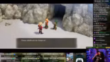 00:07:28Nach technischen Vorbereitungen beginnt das eigentliche Gameplay von Dragon Quest 7. Der Streamer zeigt sich von der Spielwelt begeistert und kommentiert die Feuerkugeln im Spiel als großartig. Er diskutiert die Möglichkeit, einen Speedrun mit dem physischen Spiel statt einer ROM durchzuführen. Es kommt zu seltsamen und glitchigen Spielereignissen, die der Streamer als kaputt und lustig beschreibt.