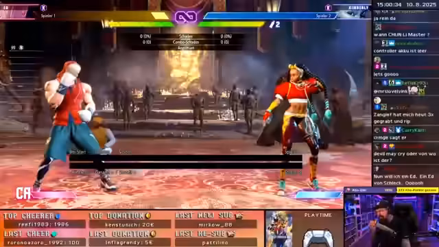 02:58:45Während des Street Fighter-Streams stößt der Streamer im Trainingsmodus auf eine besondere Musik. Es handelt sich um einen deutschen Rap-Song des Charakters Ed. Der Streamer ist begeistert von diesem Song und möchte unbedingt, dass während seiner Sagat-Kämpfe dieser spezifische Soundtrack läuft. Er versucht, die Musik einzustellen, indem er den Namen des Songs herausfindet, um die Stimmung im Training perfekt zu gestalten.