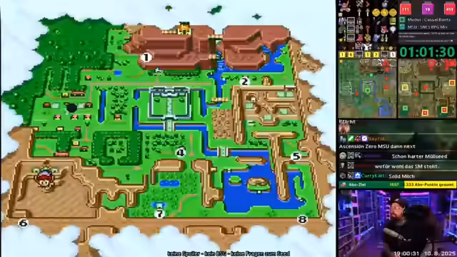 05:45:57Der Streamer setzt sein Zelda Community Race im SMW-Hack fort, das auf einem spezifischen Seed basiert. Sein Ziel ist ein Full Clear der Dungeons, wobei er sich auf die benötigten Pendants konzentriert. Die Logik des Seeds gestaltet sich komplex, da er frühzeitig einen Hammer findet und somit den Ice Palace Dungeon umgehen kann. Die Route führt ihn direkt zum Berg, um Opa zu befreien, was ihm schnell gelingt. Der restliche Durchlauf konzentriert sich darauf, den nächsten Dungeon in Logik zu erreichen und die benötigten Items effizient einzusammeln.