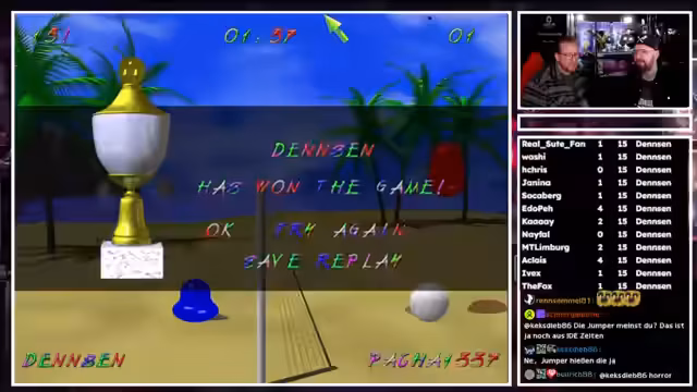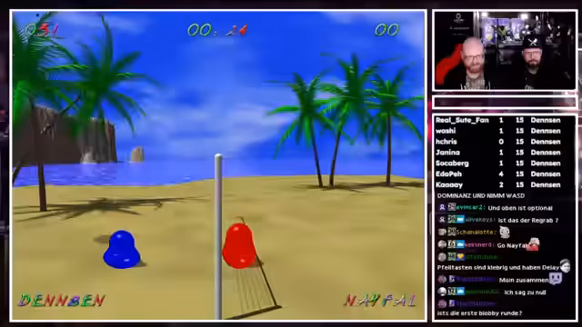 02:31:20Der Stream konzentriert sich auf mehrere Blobby Volley-Spiele, die als inoffizieller Wettkampf auf der GamescomLAN veranstaltet werden. Spieler messen ihre Fähigkeiten in Duellen, wobei der Streamer betont, dass seine Erfahrung durch zahlreiche vorherige Spiele einen Vorteil bietet. Es werden Diskussionen über Spielmechaniken wie den Wechsel der Spielseite und die realistischen Regeln, einschließlich der dreimaligen Ballberührung, geführt. Auch einige technische Probleme wie das versehentliche Schließen des Spiels werden thematisiert.