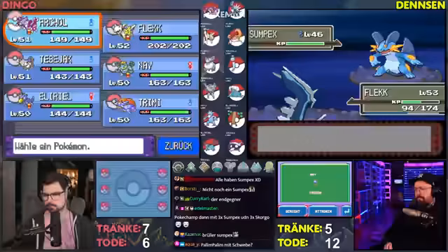 03:45:35Der Fokus liegt auf der Vorbereitung für den finalen Kampf. Das Level der Pokémon soll auf 58 angehoben werden, um den finalen Boss bekämpfen zu können. Ein wichtiger Punkt ist der Verlust eines Teammitglieds und die Diskussion über dessen Ersatz. Kecleon und Nidoqueen werden als potenzielle neue Teammitglieder in Betracht gezogen. Der Streamer gibt zu, dass sein aktuelles Team nicht ideal ist und hofft, dass Dialga stark genug ist, um das Finale zu bestehen. Die Jagd nach Items zur Wiederherstellung der AP (Aktionspunkte) ist ebenfalls ein zentrales Thema.