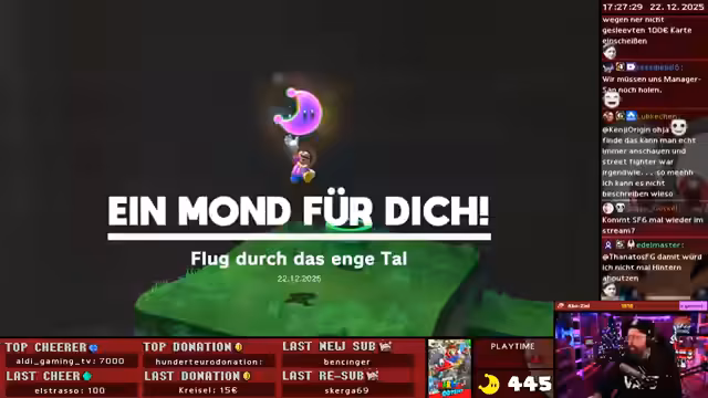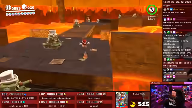 04:01:38Der Streamer spricht über seine Weihnachtspläne und den bevorstehenden Einkauf, den er nach dem Stream durchführen möchte. Parallel dazu navigiert er durch problematische Level in Mario Odyssey, insbesondere eine Wald-Welt mit vertikalem Design, die er als schlecht strukturiert kritisiert. Er drückt Frustration über die Orientierung in diesen Bereichen aus und betont die Herausforderungen trotz jahrelanger Spielerfahrung.