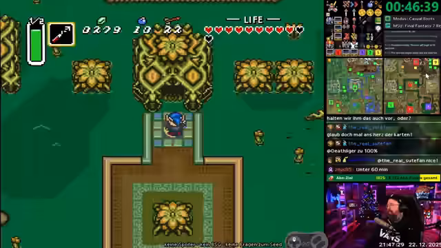 00:23:14Für den aktuellen Stream wird ein entspanntes Community-Race für The Legend of Zelda: A Link to the Past Randomizer um 21 Uhr angekündigt. Es wird betont, dass der Modus 'salzfrei' und unkompliziert sein wird ('easy peasy lemon squeezy'), mit Fokus auf das Sammeln von Items aus Truhen und dem racen gegen andere Teilnehmer. Nach dem Race ist geplant, den Weihnachtseinkauf zu erledigen.