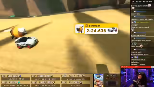 03:08:08Nach dem Start der Rennen konzentriert sich der Streamer auf die Fahrt selbst und analysiert die gegnerischen Teams. Er identifiziert Julian, Haupti und Xerox als starke Konkurrenten. Während des Spiels treten technische Probleme auf, wie ein plötzlicher Bote im Raum, der die Punktestellung durcheinanderbringt. Es wird entschieden, den Raum neu zu starten, um eine faire Spielumgebung zu gewährleisten. Nebenbei werden Einstellungen wie der Online-Status in Freundeslisten angepasst, um unbefugtes Joinen zu verhindern.