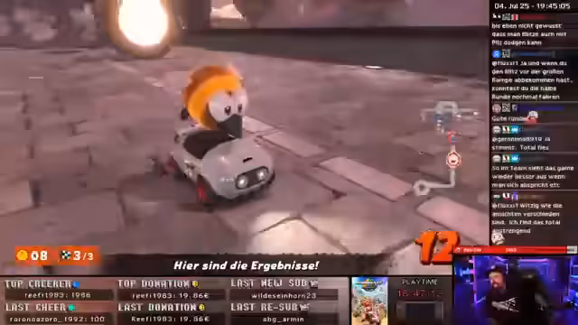 03:38:06Das Turnier läuft mit mehreren Rennen pro Cup. Der Streamer kommentiert jedes Rennen live, gibt Calls für Items wie den Blitz und diskutiert mit seinem Team über Strategien. Trotz guter Platzierungen in einigen Runden, führt ein combination aus Pech, Items und dem unfairen Einfluss des Bots dazu, dass sein Team in der Gesamtwertung weit zurückfällt. Die Stimmung im Team wechselt zwischen gezieltem Scherz und wachsender Frustration über die Spielmechaniken und den unfairen Vorteil des Gegners.