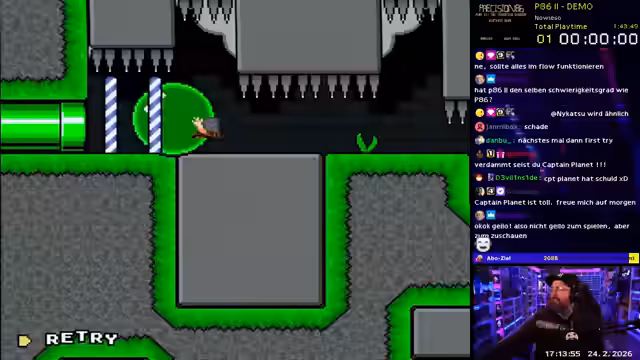 Der Abend wurde mit dem NES-Klassiker 'Captain Planet' begonnen, der durch sein unfaires Design und fehlerhafte Steuerung für starke Frustration sorgte. Später wurde zur P86 II Demo gewechselt, die durch ihr faires Gameplay und beeindruckendes Level-Design positiv auffiel. Eine unlösbare Passage sorgte jedoch ebenfalls für Verwirrung.