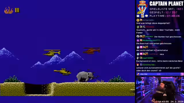 02:39:20Die anfänglichen Schwierigkeiten bei Captain Planet werden deutlich. Ein Mangel an Mana und Energie macht es unmöglich, den Elefanten zu retten und die Herz-Power zu nutzen. Das Spiel wird als extrem schwierig beschrieben, mit nur einem verbleibenden Leben. Die Fliegen im Level werden als nervig und als Helikoptervieh bezeichnet, was die Frustiation des Spielers weiter erhöht und den negativen ersten Eindruck des Spiels zementiert.