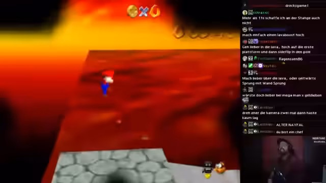 00:43:45Der Hauptfokus des Streams liegt auf dem Üben von Mario 64. Der Streamer möchte seine Fähigkeiten verbessern und gezielt an den 16-Sternen-Run arbeiten. Er findet das Spiel trotz seiner Liebe dazu extrem frustrierend, insbesondere die Steuerung, die Low-Framerate und die fehleranfälligen Mechaniken wie den Triple Jump. Er versucht verzweifelt, eine besonders knifflige Stelle mit einem Piss-Ball zu meistern, was zu zahlreichen Fehlversuchen und Ausbrüchen führt.