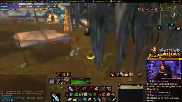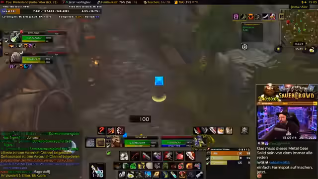 02:30:26Nach kurzer Vorbereitung, bei der der Streamer Gatzinka-Steine sammelte und Quests in Booty Bay abschloss, machten sich die Gruppe auf den Weg nach Hinterland. Es wurde über die große Anzahl an Kooperationen in Fortnite gesprochen, die der Streamer als verrückt bezeichnete. Bei den Vorbereitungen für die weiteren Quests nach Level 50 wurde das Thema Gold farmen durch Quests in östlichen Pestländern und Silithus angesprochen. Man suchte nach besseren Ausrüstungsgegenständen für den Schurken und untersuchte das Dungeon-Set T0 und dessen Abwandlungen, die später als T1.5 identifiziert wurden.