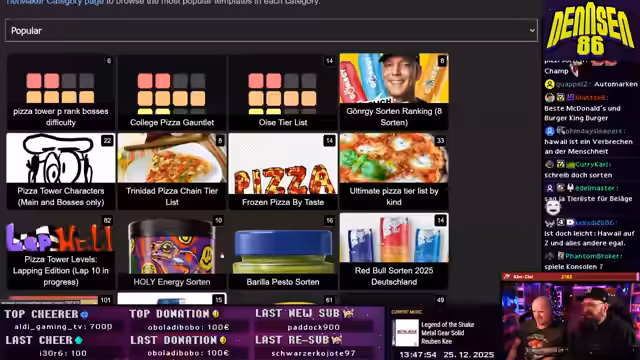 00:56:49Der Streamer nutzt eine KI, um den Wechselkurs von 1 Dollar zu Euro zu erfragen, und korrigiert einen Chat-Fehler, der 86 Dollar behauptete. Die KI gibt 1,10 Dollar pro Euro an, und er spekuliert humorvoll über Verschwörungen, da die Zahl 86 in seinem Kanal auftaucht. Es folgen Unterhaltung mit Erinnerungen an 'Schwabi'-Videos und Spiele wie 'Legacy of Kain', wo 'Hey Wichser' als Running Gag diskutiert wird. Anschließend starten sie eine Tierlist-Runde mit Themen wie Tieren, Pizza-Belägen und Gebäck. Sie bewerten deutsche Retro-Süßigkeiten, kritisieren aber ungewohnte internationale Titel. Später diskutieren sie Kinderserien wie 'ALF', 'Dinosaurs' und 'Glücksbärchen', wobei der Streamer persönliche Nostalgie teilt und die Liste als 'zu wenig' oder 'Müll' bezeichnet, bevor er den Stream beendet.