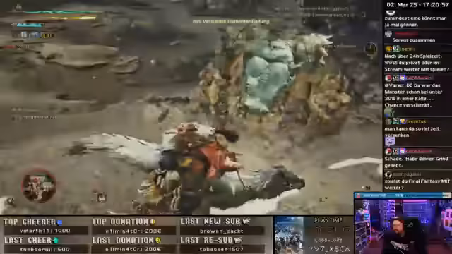 05:16:42Nach dem Schmieden wird die neue Lähmungswaffe direkt im Kampf getestet. Der Streamer kämpft gegen Monster wie Doshaguma und Dodo, um die Wirksamkeit der Waffe zu prüfen. Es gibt technische Schwierigkeiten mit der Waffenaufladung und Animation, was zu unzufriedenen Kommentaren führt. Besonders der Lademechanismus des Schwertes wird als umständlich und nicht intuitiv empfunden, was den Spielfluss behindert. Die Notwendigkeit, stundenlang zu grinden, wird als anstrengend und repetitiv empfunden.