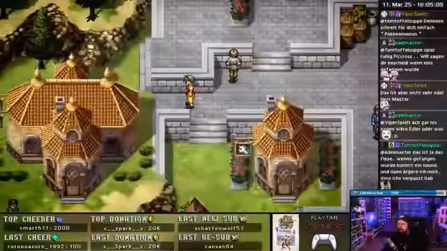 02:32:17In Suikoden erlebt der Streamer einen bedeutenden Wendepunkt der Geschichte: Odessa, eine zentrale Figur, ist verstorben. Diese Nachricht führt zu einer emotionalen Konfrontation mit den Charakteren Flick und Victor, die an die Vergangenheit der Befreiungsarmee erinnern und eine Meinungsverschiedenheit über die Zukunft der Truppen entsteht.