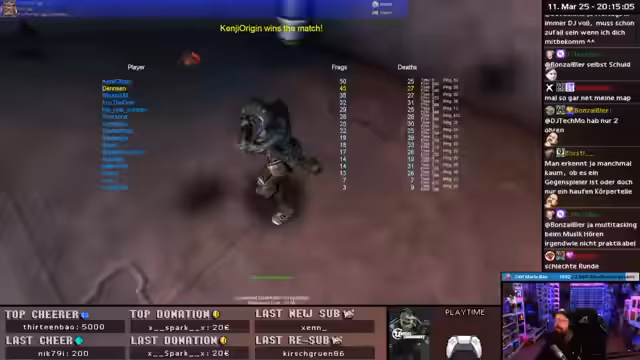 05:10:51Nach dem Abbruch des Zelda-Races wechselt der Streamer spontan zu dem Ego-Shooter Unreal Tournament. Er findet einen Community-Server und startet sofort in-actiongeladene Runden. Das Gameplay wird als rasant und chaotisch beschrieben, ähnlich wie alte LAN-Partys. Trotz anfänglicher technischer Hürden und einer Map, die er als zu voll und unübersichtlich empfindet, findet er großen Spaß an dem Retro-Shooter und verbringt eine längere Zeit damit.