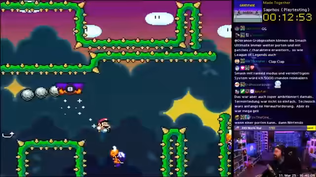 00:00:00Der Stream beginnt mit einem Speedrun von Super Mario World, der schnell von technischen Problemen überschattet wird. Der Streamer kämpft mit einem unzuverlässigen Joy-Con, der nicht springt, was zu mehreren Verlusten im ersten Level führt. Dies führt zu Frustration und unpassenden Kommentaren im Chat. Neben den Controller-Problemen tauchen auch unklare Mechaniken auf, wie die Frage, ob ein NPC ein Sprite-Killer ist oder nicht, was den weiteren Verlauf des Runs erschwert.