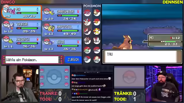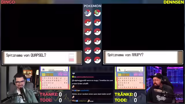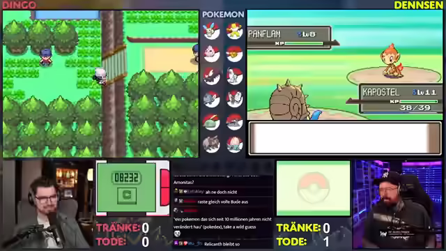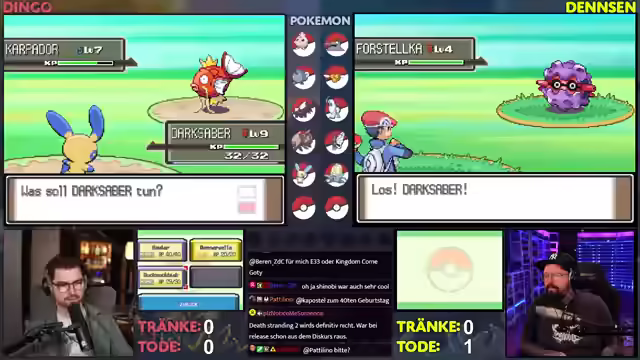 00:23:44Es werden die Einstellungen für den Pokémon Soul Link Stream angepasst, insbesondere die Möglichkeit, Pokémon ohne Tausch zu entwickeln. Der Streamer wählt Raupi als sein erstes Pokémon, während der Partner Quapsel wählt. Es kommt zu einer ersten Auseinandersetzung, bei der Raupi trotz einer Vierfachschwäche überraschend gut abschneidet. Es wird überlegt, ob die Fähigkeiten der Pokémon sich mit der Entwicklung ändern und ein passender Spitzname für Raupi wird gesucht. Der Name wird per Zufallsgenerator ermittelt. Es wird über die Wahl des Pokémon und dessen Stärke gewitzelt, bevor der Streamer sich auf den Weg zum nächsten Ziel macht. Es wird überlegt, wie man am besten vorgeht, um im Spiel voranzukommen und welche Pokémon man fangen sollte.