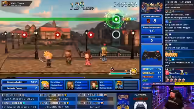 04:14:05Nachdem ein Schlüssel im Final Fantasy Mystic Quest gewonnen wurde, wechselt der Streamer kurzzeitig in diesen Modus. Er absolviert den ersten Song Mystic Quest und erwähnt Benjamin, einen Charakter aus dem Spiel. Anschließend kehrt er zu Theaterhythm zurück, um den nächsten Schlüssel zu holen. Die Herausforderungen im Spiel werden immer größer, insbesondere bei hohen Schwierigkeitsgraden. Der Streamer kämpft mit einem ausgeleigten Controller, der 'flippt' und unpräzise reagiert, was zu Fehlern führt. Trotzdem lobt er den Soundtrack, insbesondere die Opernsongs aus Final Fantasy, die ihn sehr emotional berühren.