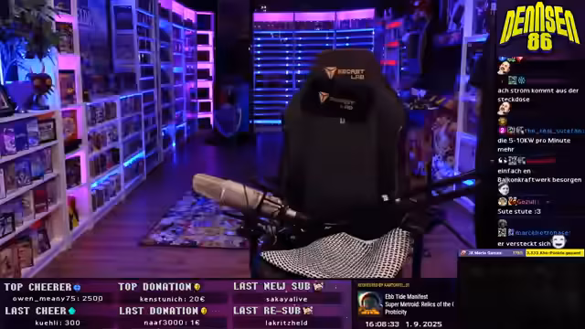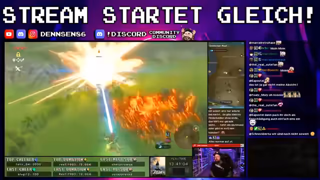 00:00:01Zu Beginn des Streams steht das Gameplay von Mario Party im Fokus. Der Streamer interagiert intensiv mit dem Chat, diskutiert über Farben wie grün und türkis und kritisiert die Spielmechaniken. Er äußert sich frustriert über toxisches Verhalten im Spiel, das Fehlen von Heiloptionen und das Designdefizit, das er sich wie in einem VR-Gefühl beschreibt. Gleichzeitig gibt es humoristische Einlagen wie das Spammen von "Miau" und eine allgemeine witzige, aber leicht gestresste Atmosphäre während der Mario Party-Runden.