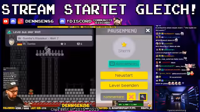 00:00:00Der Streamer beginnt mit heftigem Gaming-Chaos, in dem es um versenkte Schiffe, das Überleben in der Hölle und spektakuläre 'geklippte' Tode geht. Er beschwert sich über eine unscharfe Grafik und feiert das Erreichen von neuen Höchstständen, wie eine erhöhte 'Max Capé'. Es geht um das Vermeiden roter Gegner, das Sammeln von Sternen und die Präsentation eines geheimagentenähnlichen 'schwarzen Shy Guy'-Setups, bei dem er sich wie ein 'Infinite Bubble Jump'-Profi fühlt, der alles mühelos meistert. Gleichzeitig beschwert er sich über vermeintliche 'Fehler im Spiel', wenn er auf Rang 11 landet, und spekuliert darüber, ob er nur einen Pfeil bräuchte, um die Leute endlich einzuholen.