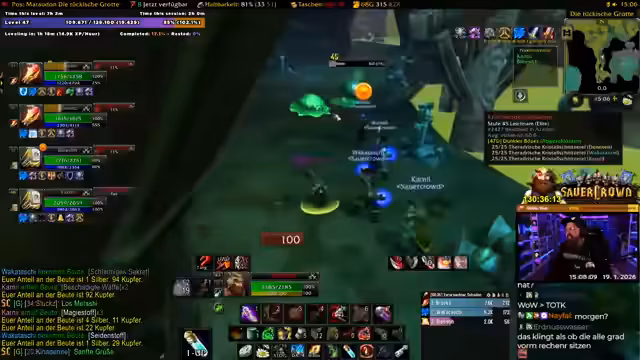 00:17:56Nach einer kurzen Begrüßung ('Grüße!') teilt der Streamer mit, dass er sich entschieden hat, bereits jetzt mit der World-of-Warcraft-Session zu beginnen, obwohl er eigentlich eine Stunde später geplant hatte. Er betont, dass 'WoW' ein 'Easy Game zum Labern' sei, und will nicht zu viel Zeit mit Gerede verlieren, sondern direkt in den Content einsteigen. Er erwähnt, dass er sich etwas neu mit Addons beschäftigt hat und nun sein 'Item Level' prüfen möchte. Sein Plan für die Session: Zuerst will er in einer Gruppe 'fairer last nagas' grinden, da er sich bereits informiert hat, wo gut zu leveln ist, und sucht explizit nach einer Gruppe für einen Questrun. Sein Ziel ist ein Instanzlauf in Maraudon, nicht nur wegen der dort zu findenden Waffe aus einer Quest, sondern auch, weil er endlich einmal einen Quest-Run dort machen möchte, was er noch nie zuvor getan hat.