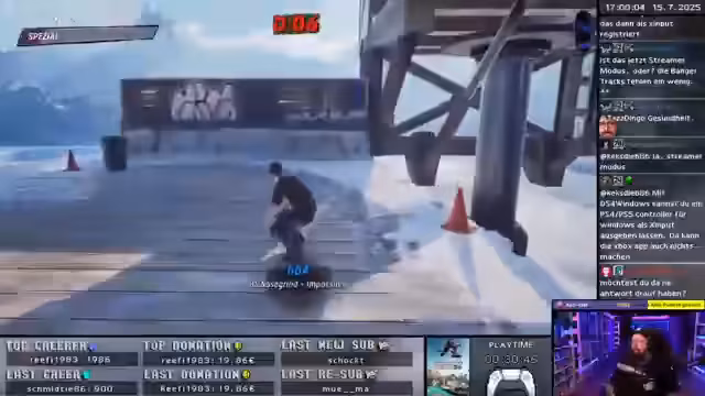 03:29:02Zurück im Spiel konzentriert sich der Streamer auf die Herausforderung 'Beeindrucke die Profi-Skater' und die Rettung der Fähre. Nach Abschluss dieser Aufgaben erkundet er den Online-Modus. Er ist enttäuscht, dass es keine klassischen Leaderboards für Kombos gibt, und stellt fest, dass der Tempolauf-Modus von Cheatern ruiniert ist, was den langfristigen Spielspaß trübt.