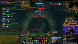 08:51:23Der Streamer demonstriert eine spezielle Pull-Technik für einen Boss. Er zieht die Aggro, lässt sich vom Boss zurückstoßen und nutzt eine Ladefähigkeit ('charge'), um sofort wieder an ihn heranzukommen und die Aggro zurückzuerhalten. Dies verhindert, dass der Raid Schaden nimmt. Es wird betont, dass der Boss nur den Tank stoßen kann, was diese Strategie ermöglicht.