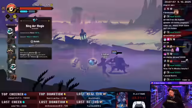 04:16:49Der Streamer beginnt mit einem fiktiven Szenario, in dem man niemandem mehr trauen kann. Er testet neue Spielmechaniken wie einen starken Amulett-Buff, der Angriffe von hinten verstärkt und mehr Mana, Kritik und Tempo gibt. Der Modus des Streams ist entspannt und Open Boots, wie der Streamer erklärt. Er erkundet eine verlorene Stadt namens Jeldrim und stellt fest, dass bestimmte Dolche zur Verbesserung seiner Ausrüstung nicht gezählt werden, was er als sehr schade empfindet. Entdeckt wird ein neues Element, die Spektralattacke, die Schaden in Spektralrüstung umwandelt.
