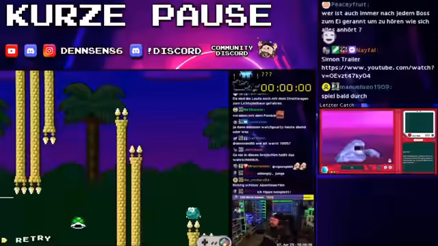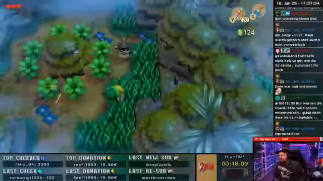 05:02:04Das Zelda-ALTTPR Community Race beginnt. Der Streamer ist mit anderen Teilnehmern im Spiel und erleidet durchweg Missgeschicke und Fehlentscheidungen, die zu Zeitverlust führen. Besonders in den Bereichen Skywoods und Kapustel scheitert er mehrfach und äußert große Frustration über die RNG (Random Number Generation) und die Item-Platzierung. Trotzdem bleibt er im Wettbewerb und versucht, das Rende noch zu retten, während er sich über die extrem schwierigen Bedingungen beschwert.