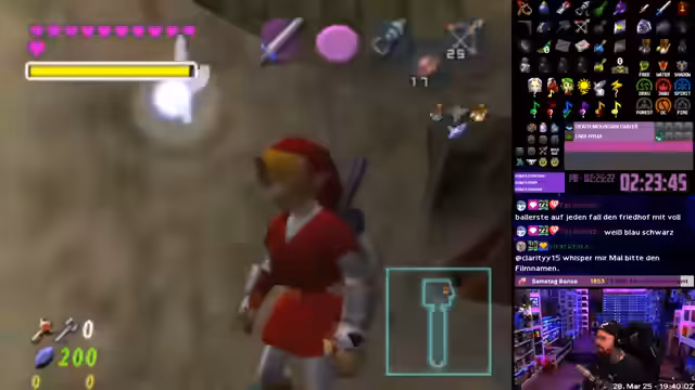 06:15:33Der Streamer navigiert durch die verbleibenden Dungeons wie Forest und Fire Temple. Er stößt auf Herausforderungen bei der Orientierung und bei der Platzierung wichtiger Items wie des Hammers oder des Big Keys. Die Positionen der Trühen und der Weg dorthin werden als umständlich und kackig beschrieben.