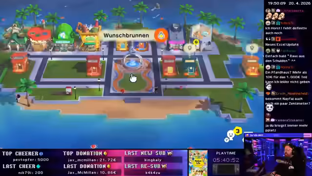 01:29:26Der Streamer setzt seine Aktivitäten auf der Insel fort und interagiert mit den Charakteren. Er organisiert verschiedene Aktivitäten wie das Silhouettenquiz mit Mario, das dieser gewinnt und eine Taschenuhr als Preis erhält. Der Streamer entwickelt die Insel weiter, indem er neue Gebäude und Einrichtungen hinzufügt, wie eine Werkstatt, in der er eigene Kreationen wie Essen herstellen kann. Diese Aktivitäten zeigen die Vielfalt der Möglichkeiten im Spiel und den Kreativität des Streamers.