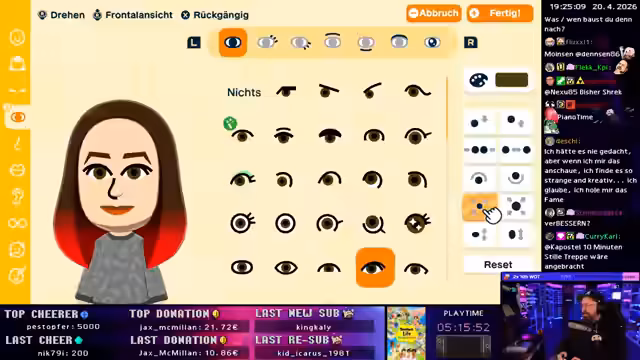 02:17:23Der Streamer experimentiert intensiv mit der Erstellung von Mii-Charakteren im Spiel Tomodachi Life. Er versucht, reale Personen wie Valera und Nefel als Spielcharaktere nachzubilden, stößt aber auf Schwierigkeiten bei der Gestaltung der Gesichter und Frisuren. Der Prozess wird als aufwendig und teilweise unzufriedenstellend beschrieben, da die Ergebnisse oft nicht den Erwartungen entsprechen oder sogar als 'creepy' empfunden werden.